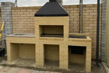 Вы можете разместить модульные печи барбекю на открытом воздухе, так как фасад покрыт декоративной штукатуркой, которая защитит барбекю от внешнего воздействия окружающей среды. Помимо этого можно осуществить установку элементов для приготовления пищи в беседке или на террасе с навесом с помощью переходника на сэндвич трубу. Такой переходник позволит безопасно вывести дымоход сквозь кровлю. За счет двойной трубы с утеплением(сэндвич) вы можете осуществить отвод дымовых газов  и увеличить тягу воздуха, что поспособствует большей теплоотдаче от углей или дров. Комплекс из бетона может состоять из мангала, печи под казан, тандыра, столика с мойкой и углового столика.